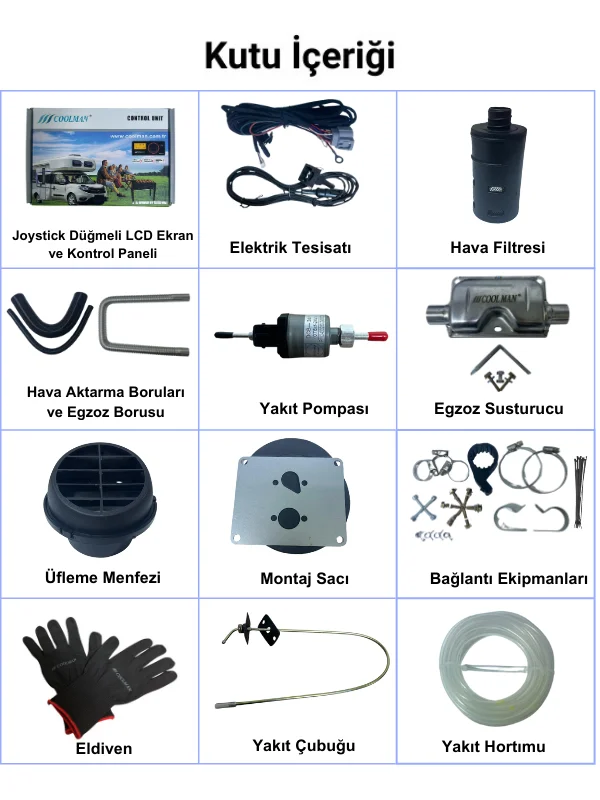 Coolman Webasto Tipi Eko Paket Dizel Isıtıcı, hem kompakt boyutları hem de yüksek performansıyla dikkat çeken ekonomik bir ısıtma çözümüdür. Çeşitli alanlarda kullanım kolaylığı sunar ve 12V ile 24V güç seçenekleriyle uyumludur.