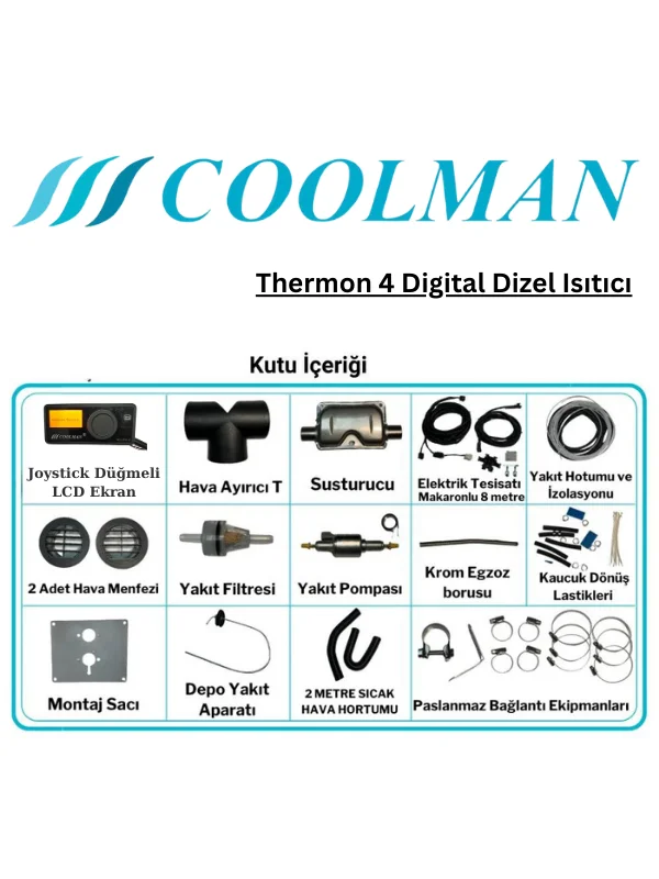 Coolman Thermon T4, dijital dizel ısıtıcı, ProTimer dizel ısıtıcı, uyku modlu dizel ısıtıcı, 5kW dizel ısıtıcı, marin dizel ısıtıcı, 12V dizel ısıtıcı, 24V dizel ısıtıcı, tekne ısıtıcı, yat ısıtıcı, karavan dizel ısıtıcı, araç içi ısıtıcı, dizel soba marin, portatif dizel ısıtıcı, otomatik stop dizel ısıtıcı