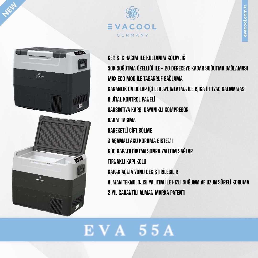 Evacool Germany EVA55A tek kapak çift bölme araç içi buzdolabı TEK KONTROL